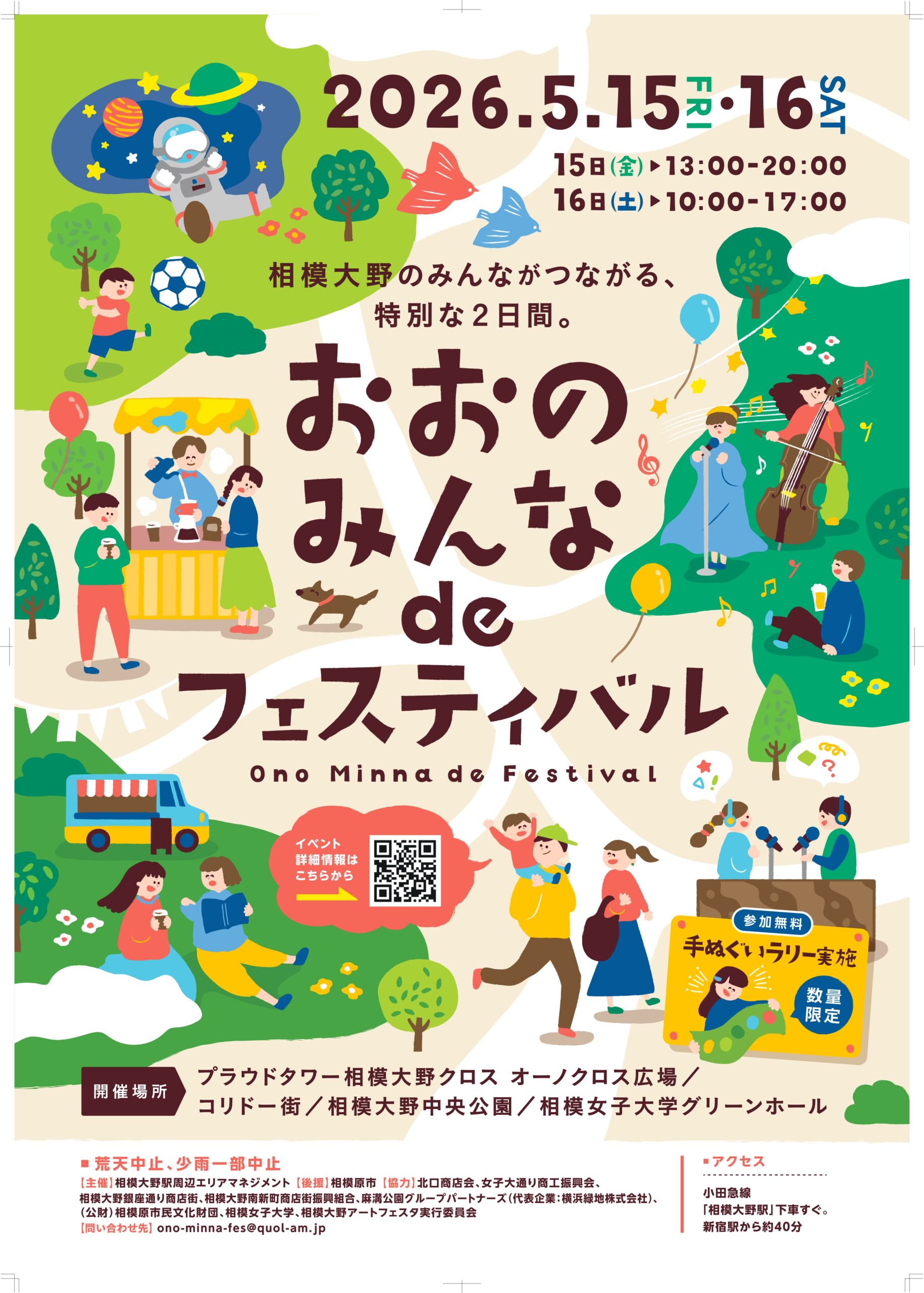 相模大野駅周辺エリアマネジメント(通称:おのみん)は、2026年5月15日(金)・16日(土)の2日間、相模大野駅周辺一帯にて「おおのみんな de フェスティバル」を開催いたします。