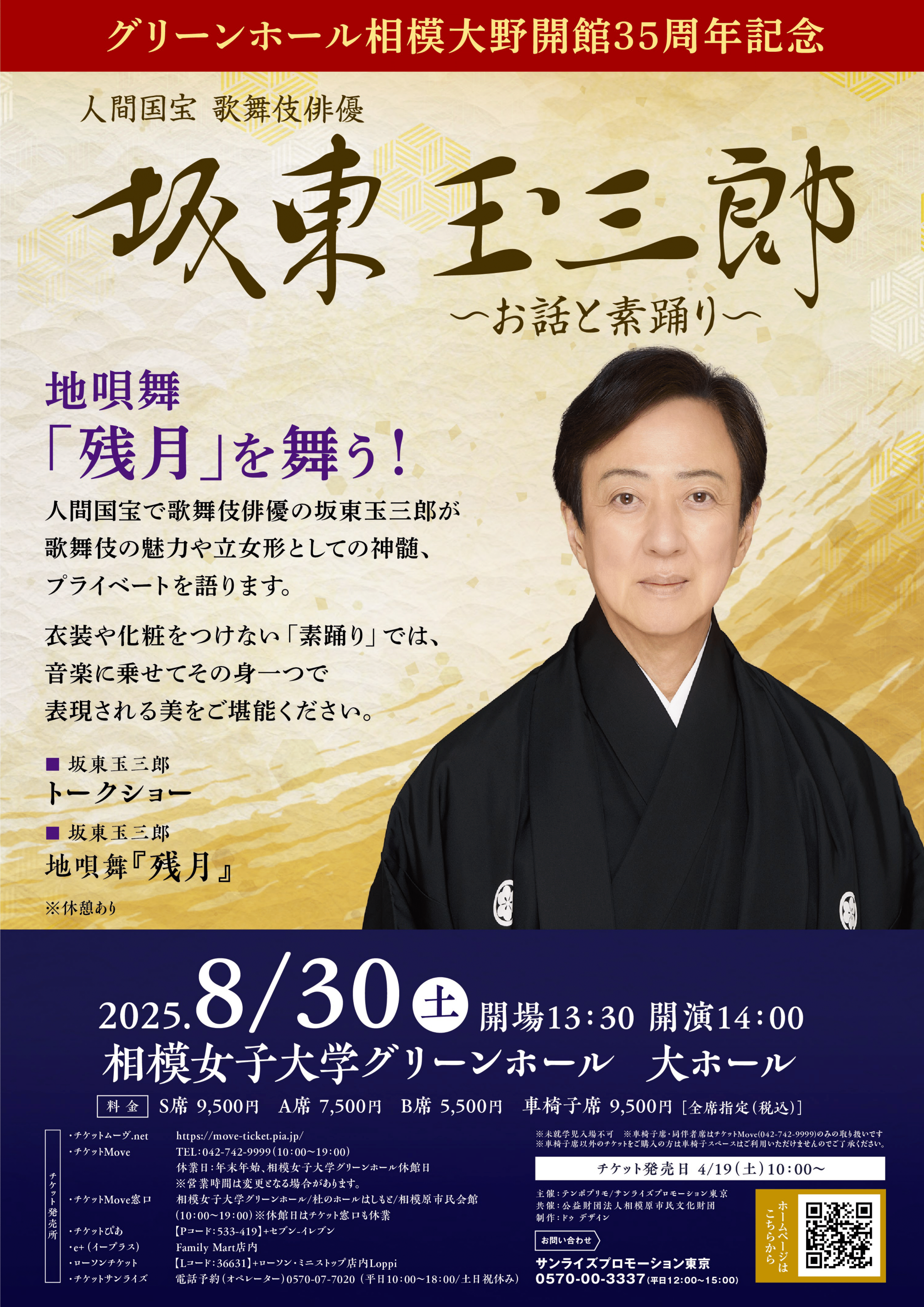 坂東玉三郎(人間国宝・歌舞伎俳優)~お話と素踊り~