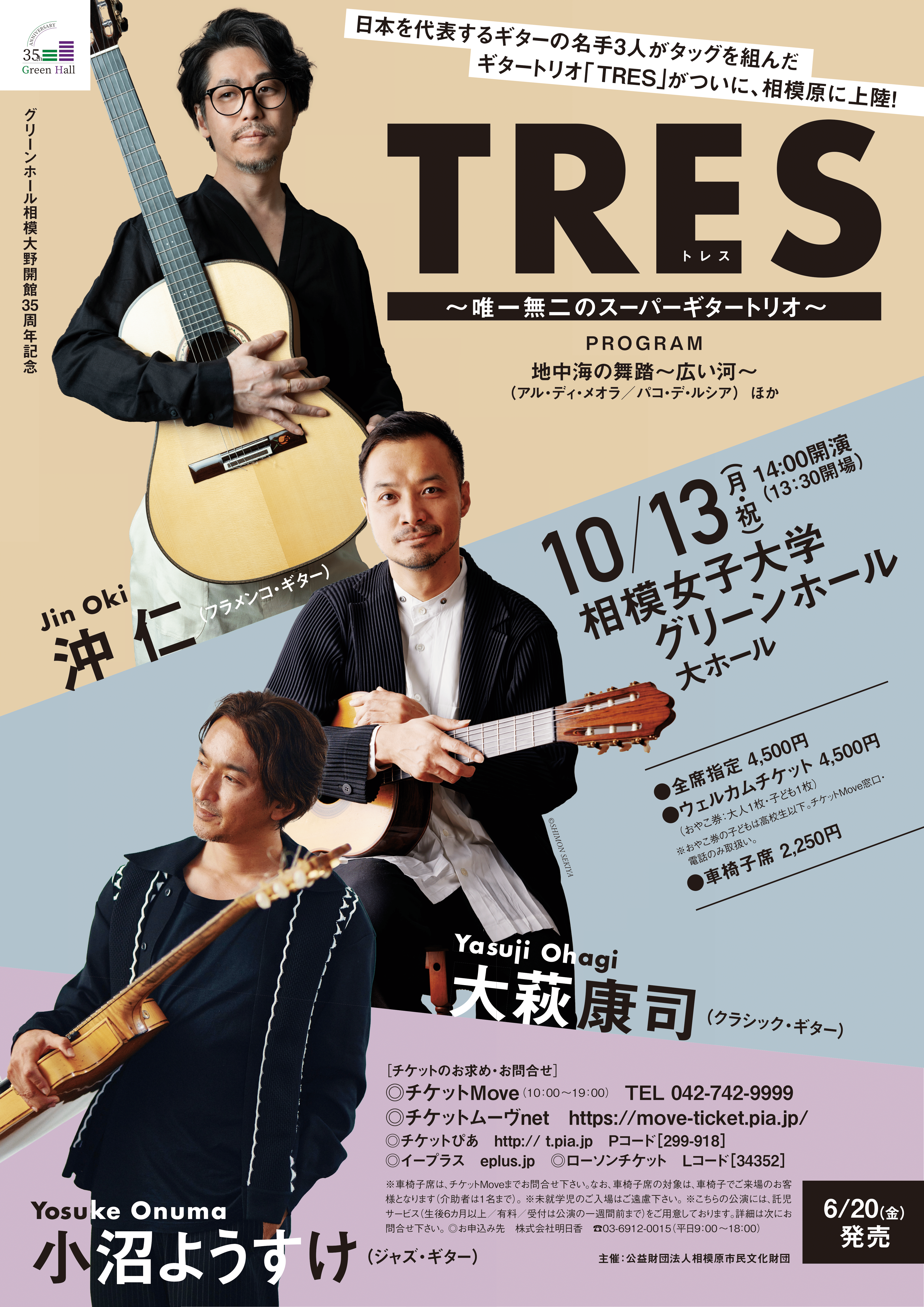 ジャンルを代表する3名で結成された唯一無二のギタートリオ『TRES(トレス)』が、ついに相模原に上陸!