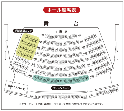 ※グリーンシートとは、客席の一部を取り外して、車椅子席として使用するものです。