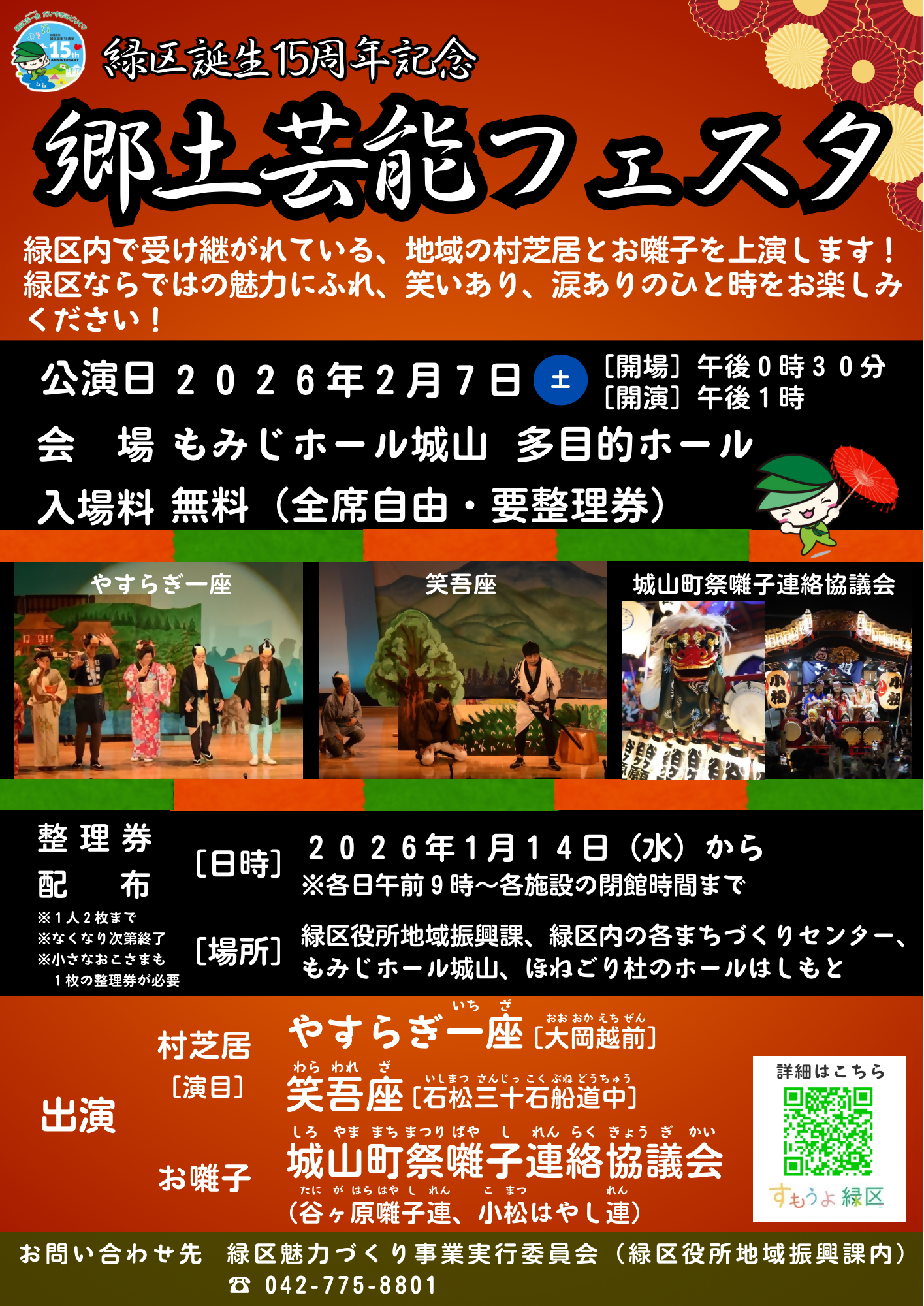 緑区内で受け継がれている、地域の村芝居とお囃子を上演します!