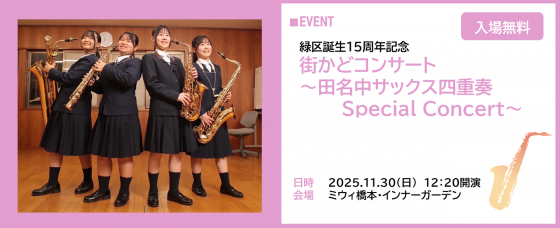 街かどコンサート ~田名中サックス四重奏 Special Concert~