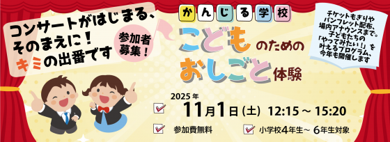 【募  集】 11/1(土)かんじる学校 こどものためのおしごと体験 ~コンサートがはじまる、そのまえに!キミの出番です~